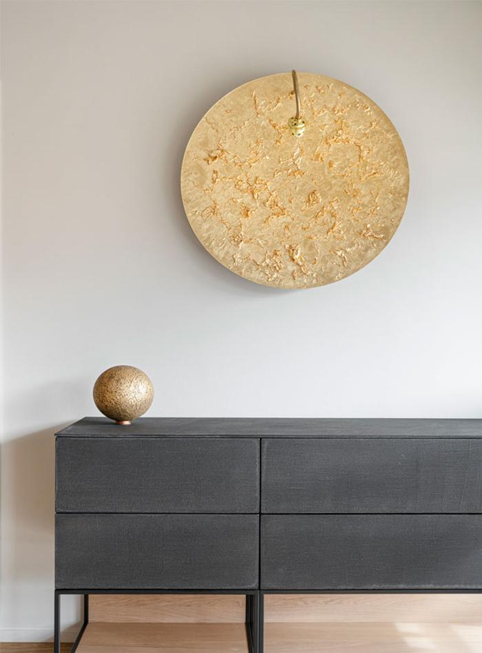 Luna Piena est une lampe murale de la collection Luci d’Oro de Catellani & Smith naît comme une réflexion sur la couleur de la lumière : la lumière dorée du soleil, du feu; des lumières chaudes, où le concept de réfraction commence à prendre forme dans l’esprit d’Enzo Catellani, qui l’appliquera souvent à d’autres créations. LED fourni GU5.3 12V 1x7,5W / classe energetica F / lumen 630 / K 3000 / CRI 90. 220-240V trasformatore LED a bassa tensione / dimm. Triac.