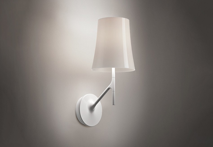 Un soutien fin, comme le tronc d’une jeune pousse. L’abat-jour reprend la forme classique d’une lampe de lecture. Le système d’allumage est dessiné comme une branche, prête à accueillir un oiseau, "Birdie" en anglais. Les trois éléments tissent spontanément des liens entre eux pour donner vie à une lampe amicale qui conjugue un design léger, pur et convivial à un caractère marqué. Réalisée dans des matériaux résistants mais légers, Birdie a des personnalités très différentes selon son coloris. elle se fait discrète et presque invisible dans la version blanche, tandis que dans les versions amarante, orange ou grise peut devenir protagoniste et caractériser un espace. Le modèle en applique vient compléter la famille des lampes Birdie, augmentant ainsi la possibilité de créer des associations entre les différents modèles et de coordonner l'éclairage d'une pièce entière.