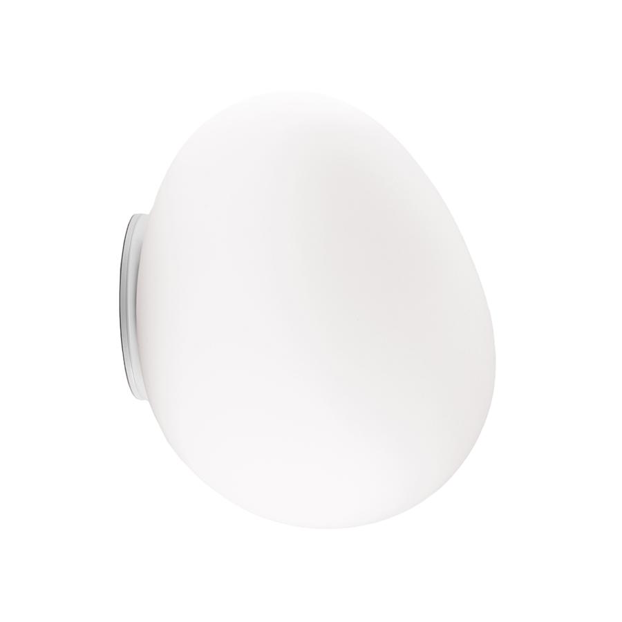 La forme de Gregg est le fruit d’une inspiration naturelle et d’une recherche approfondie. Elle fait penser à un grand galet poli par l’eau, ou bien à l’oeuf d’un animal mythologique, symbole de création et de régénération. Un volume pur et familier dans sa facilité d’interprétation, et pourtant surprenant, car la forme asymétrique de Gregg change d’image selon le point de vue de la personne qui l’observe. Une solution inédite pour décliner un matériau traditionnel comme le verre devient ainsi un instrument dans les mains du créateur pour apporter un caractère original au milieu environnant. Trois dimensions différentes dans les versions à suspension, de table, plafonniers et appliques: la collection Gregg est un modèle absolument parmi les plus versatiles et transversaux, en s’intégrant avec facilité au sein de tout type de contexte. Dans le milieu domestique, la lumière chaude et uniforme irradiée par le diffuseur satiné blanc et le style essentiel ont une forte valeur fonctionnelle et décorative. Le blindage de l’ampoule dans toutes les directions – grâce à la forme fermée du diffuseur – protège de l’éblouissement et permet de l’insérer même sur des hauteurs différentes. Utilisée en composition, Gregg est offerte aux utilisations les plus surprenantes: une structure « en pluie » accentue l’extension verticale d’une baie vitrée ou d’une cage d’escalier, avec un effet de grand impact scénographique; le déploiement dans le sens longitudinal d’une multiplicité de suspensions à différentes hauteurs engendre des faux-plafonds lumineux spectaculaires; le volume réitéré le long d’une ligne introduit de nouvelles perspectives, pour arriver à un « trompe-l’oeil » lumineux.