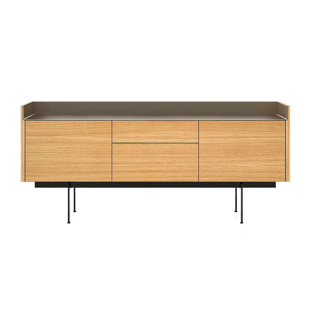 PUNT MOBLES buffet meuble STOCKHOLM avec 2 portes et 2 tiroirs STH302 avec la base H 29 cm (Chêne mat / Dessus Bronze / Base noire - MDF E1 et plateau en aluminium anodisé)