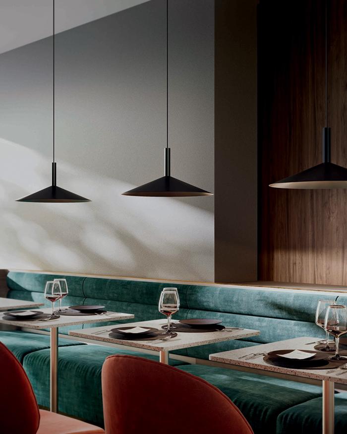 Le design de Altura Penta Light s'adapte parfaitement en contextes soit résidentielles soit contract. La version à suspension de grande personnalité et goût permet, par l'utilisation du seul abat-jour, une maximale flexibilité d'utilisation dans n'importe quel espace. Métal laqué noir mat avec détails en métal laqué argent. LED intégré 14W - 2700/3000K - 1180lm, dimmable.