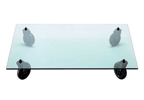 FONTANA ARTE table basse rectangulaire à Roues TAVOLO CON RUOTE (140 x 70 cm - Verre)