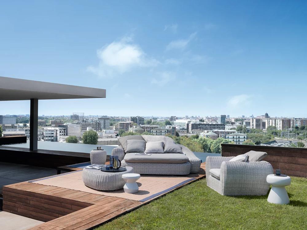 Inout 44 Gervasoni est une table basse-pouf en béton GFRC noir, blanc, gris anthracite ou en céramique blanc décorée de pois noirs ou de rayures noires. Elle présente une forme de bouchon champagne, essentielle et minimale.