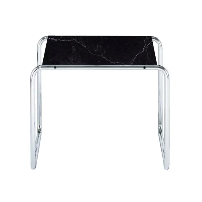 KNOLL table basse carrée LACCIO (Noir Marquina - Marbre et acier chromé)