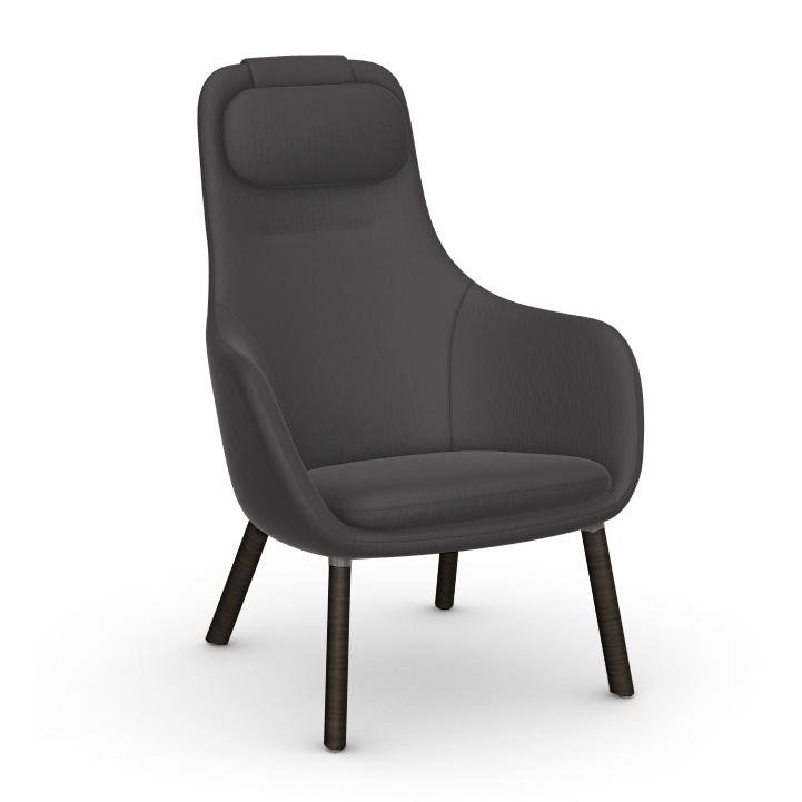 VITRA poltrona con cuscino del sedile sciolto HAL LOUNGE CHAIR in tessuto Volo (Grigio medio, base in rovere scuro con smalto protettivo - Tessuto e legno)