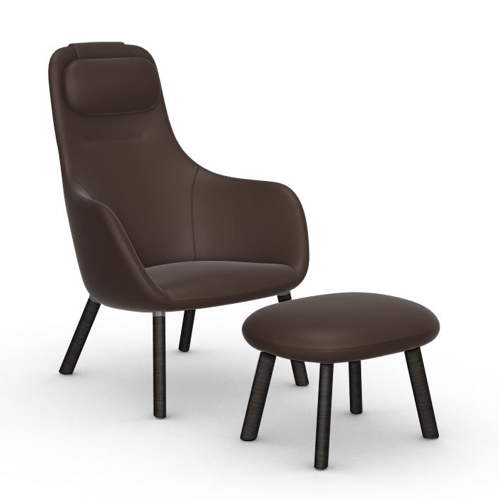VITRA poltrona HAL LOUNGE CHAIR & OTTOMAN in Pelle Premium (Castano, base in rovere scuro con smalto protettivo - Pelle e legno)