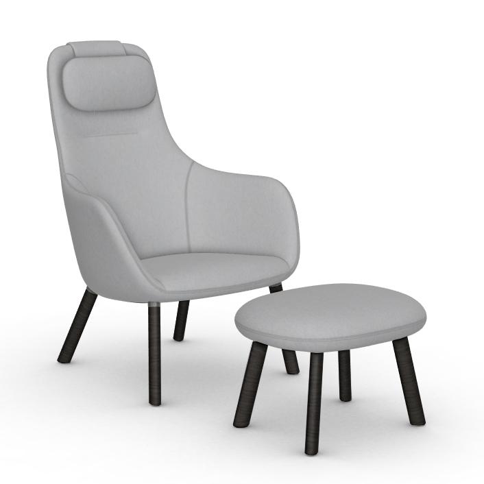 VITRA poltrona HAL LOUNGE CHAIR & OTTOMAN in tessuto Cosy 2 (Blu tenero, base in rovere scuro con smalto protettivo - Tessuto e legno)