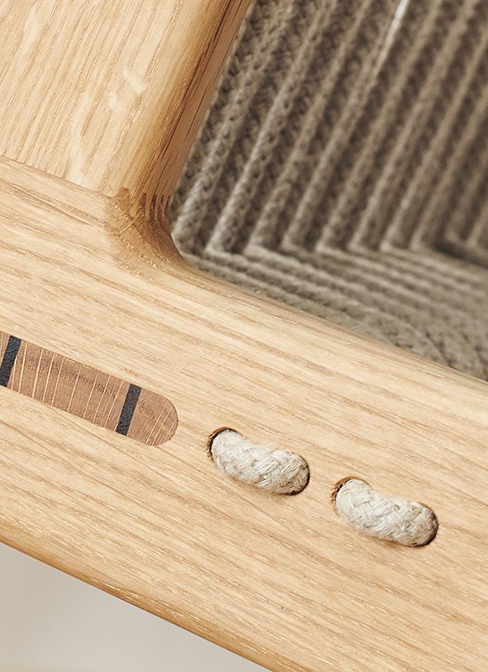 GUBI poltrona initial chair con cuscino MR01 (Rovere e corda in lino naturale - Legno massello)