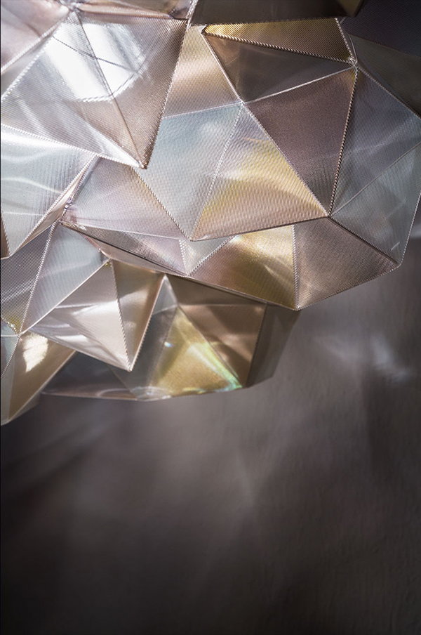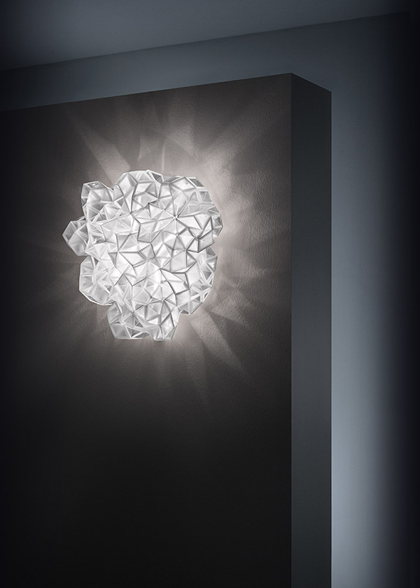 Traendo ispirazione dai cristalli incastonati nelle fratture delle rocce che, toccati dalla luce, manifestano un’anima brillante, poetica e multiforme, Drusa ha un segno contemporaneo dove l’asperità degli angoli, disegnati dall’effetto cromatico del Lentilfex® stampato con finitura Velvet, viene smorzata dalla fonte luminosa centrale che conferisce profondità al design, armonizzando luce e forma. Sia in versione plafoniera/applique che a sospensione, che solletica l’immagine di un diamante, Drusa conferisce agli ambienti un sapore fresco e trendy, perfetta per illuminare con carattere in tutte le sue sfumature cromatiche. Lampadina non inclusa.