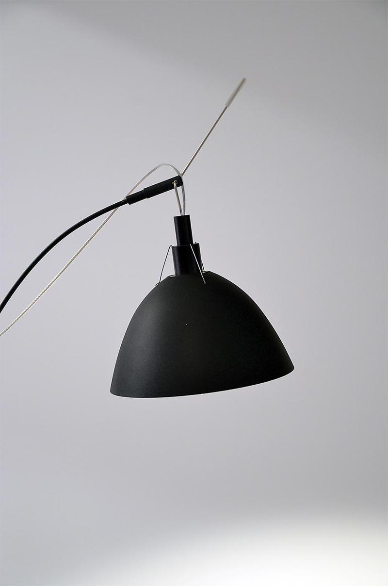 Alluminio, acciaio inox. Lo snodo sferico alla base consente una rotazione e un’inclinazione libere. Il braccio telescopico è estensibile da 60 a 90 cm. Il riflettore può essere orientato in tutte le direzioni tramite la maniglia. In entrambe le versioni, la piastra di base e l’asta sono nere. Riflettore in alluminio lucido o nero opaco.