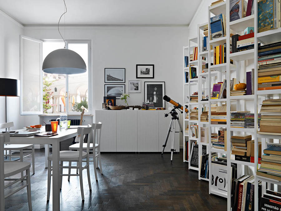 Leon Horm è una madia che gioca con un suggestivo effetto ottico che determina la sua caratteristica saliente: apparire diverso a seconda del punto di osservazione. Frontalmente le ante sono scandite da un motivo a righe verticali policrome ma, osservandole lateralmente, prevale l’omogeneità chiara o scura. Anche la versione in finitura unica, laccata bianca, funziona grazie al gioco d’ombre che si crea con la luce d’ambiente.