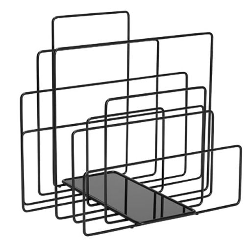 Un groviglio di fili, apparentemente disordinato, si offre all'uso in maniera semplice e intuitiva. Libri, riviste, giornali, ma anche ogni piccolo oggetto vogliate tenere a portata di mano. Dunque un portariviste che lascia spazio alla fantasia di ognuno di noi.