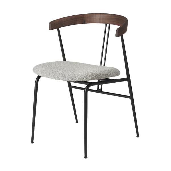 GUBI sedia con braccioli e cuscino VIOLIN (Cat. A Gabriel Tempt 61168 - Tessuto, noce americano oliato e acciaio verniciato nero)