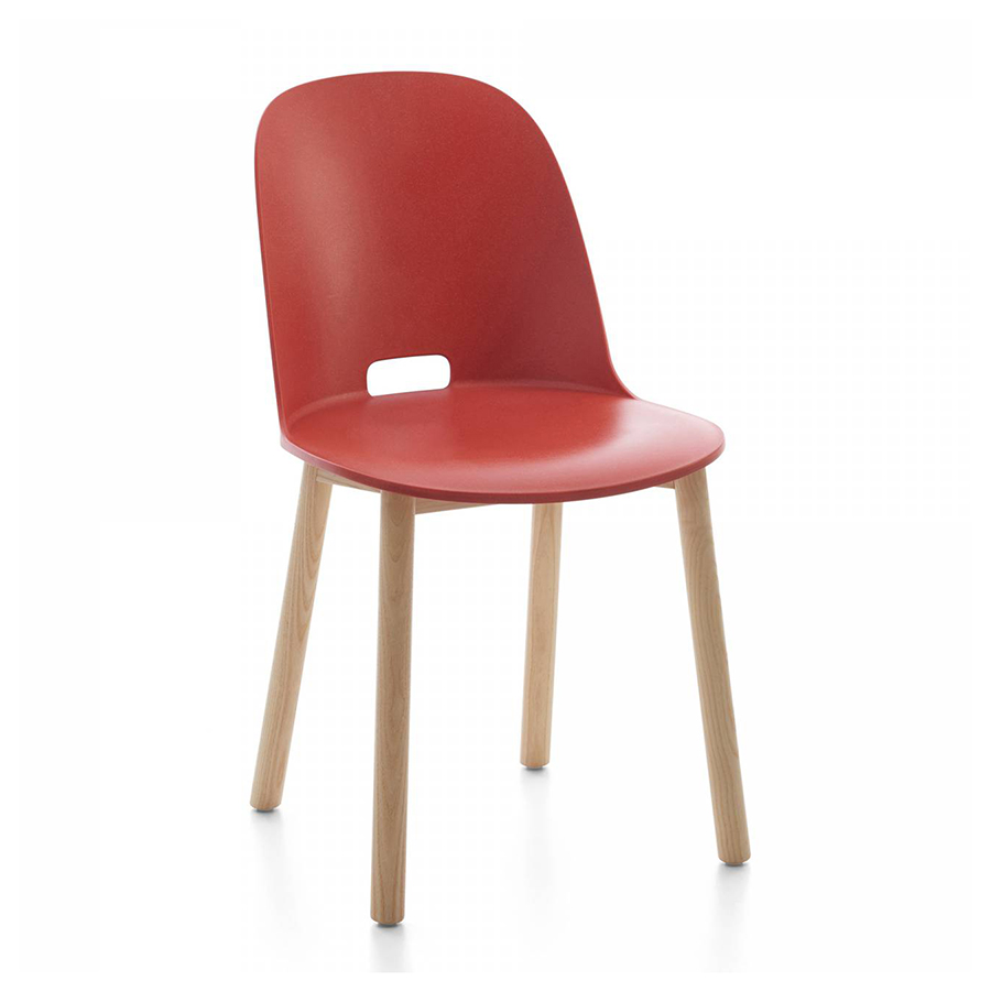 EMECO ALFI CHAIR HIGH BACK sedia con schienale basso (Red e frassino chiaro - Polipropilene e fibra di legno riciclato)
