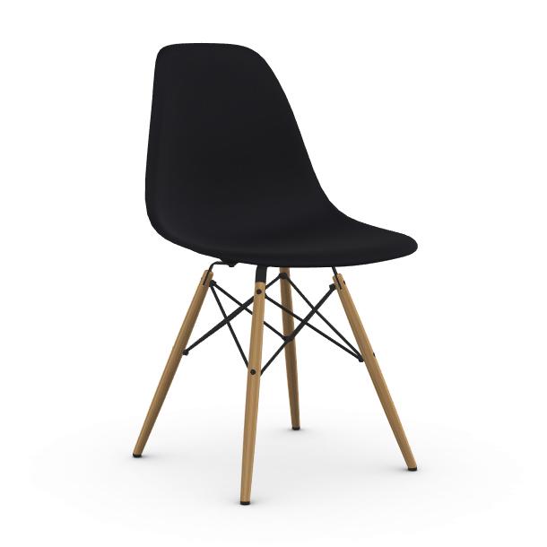 VITRA sedia con base in frassino miele Eames Plastic Side Chair DSW NUOVE DIMENSIONI (Nero intenso - Polipropilene e legno)