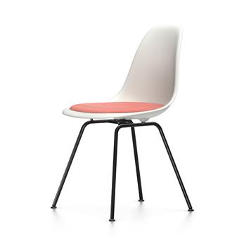 VITRA sedia con cuscino e base nera Eames Plastic Side Chair DSX NUOVE DIMENSIONI (Bianco, cuscino rosso papavero/avorio - Polipropilene, acciaio verniciato e tessuto Hopsak)