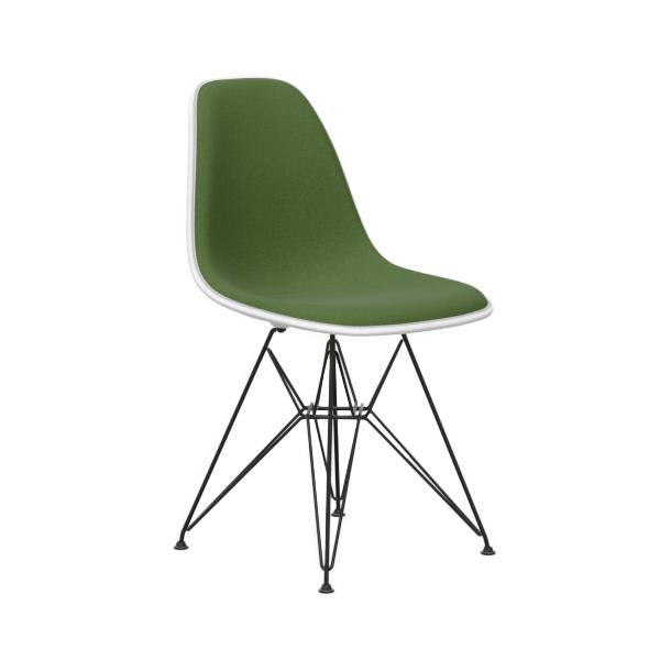 VITRA sedia interamente imbottita con base nera Eames Plastic Side Chair DSR NUOVE DIMENSIONI (Bianco, cuscino verde prato/foresta - Polipropilene, acciaio verniciato e tessuto Hopsak)