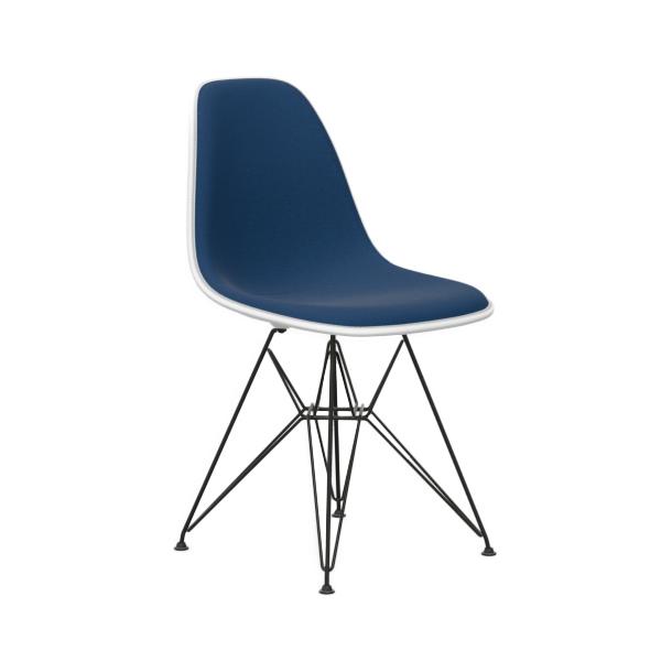 VITRA sedia interamente imbottita con base nera Eames Plastic Side Chair DSR NUOVE DIMENSIONI (Bianco, cuscino blu/marrone palude - Polipropilene, acciaio verniciato e tessuto Hopsak)