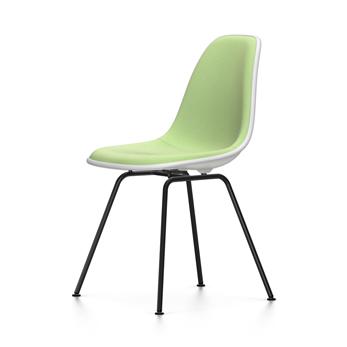 VITRA sedia interamente imbottita con base nera Eames Plastic Side Chair DSX NUOVE DIMENSIONI (Bianco, cuscino verde prato/avorio - Polipropilene bianco, acciaio cromato e tessuto Hopsak)