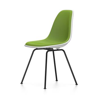 VITRA sedia interamente imbottita con base nera Eames Plastic Side Chair DSX NUOVE DIMENSIONI (Bianco, cuscino verde prato/foresta - Polipropilene bianco, acciaio cromato e tessuto Hopsak)