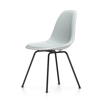 VITRA sedia interamente imbottita con base nera Eames Plastic Side Chair DSX NUOVE DIMENSIONI (Bianco, cuscino blu ghiaccio/avorio - Polipropilene bianco, acciaio cromato e tessuto Hopsak)