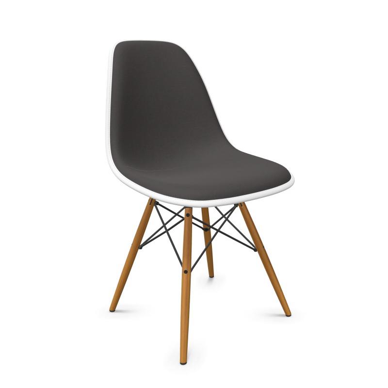 VITRA sedia interamente imbottita e base in acero dorato Eames Plastic Side Chair DSW NUOVE DIMENSIONI (Bianco, cuscino grigio scuro - Polipropilene, legno e tessuto Hopsak)