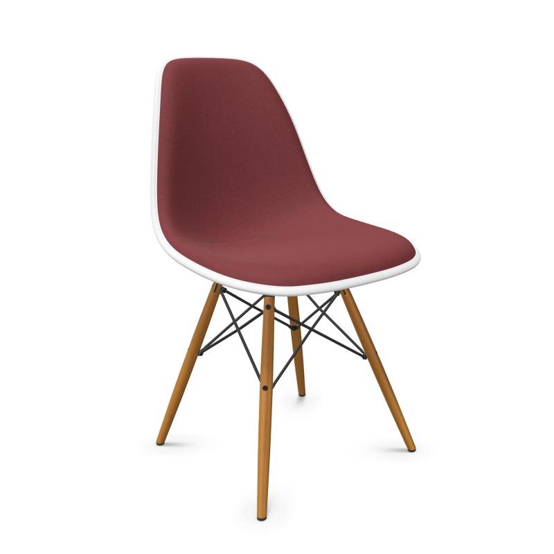 VITRA sedia interamente imbottita e base in acero dorato Eames Plastic Side Chair DSW NUOVE DIMENSIONI (Bianco, cuscino rosso/marrone palude - Polipropilene, legno e tessuto Hopsak)