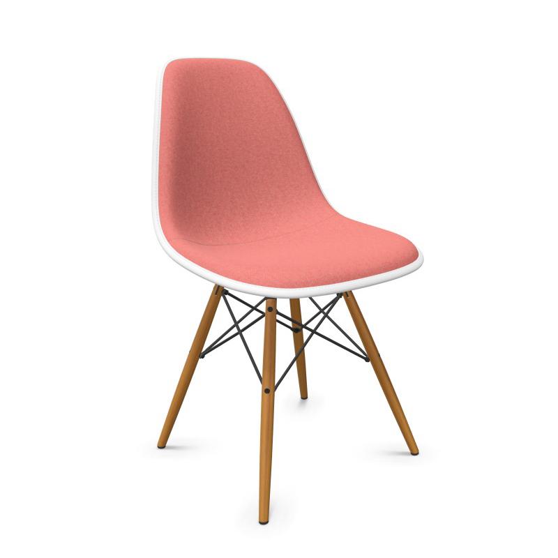VITRA sedia interamente imbottita e base in acero dorato Eames Plastic Side Chair DSW NUOVE DIMENSIONI (Bianco, cuscino rosso papavero/avorio - Polipropilene, legno e tessuto Hopsak)
