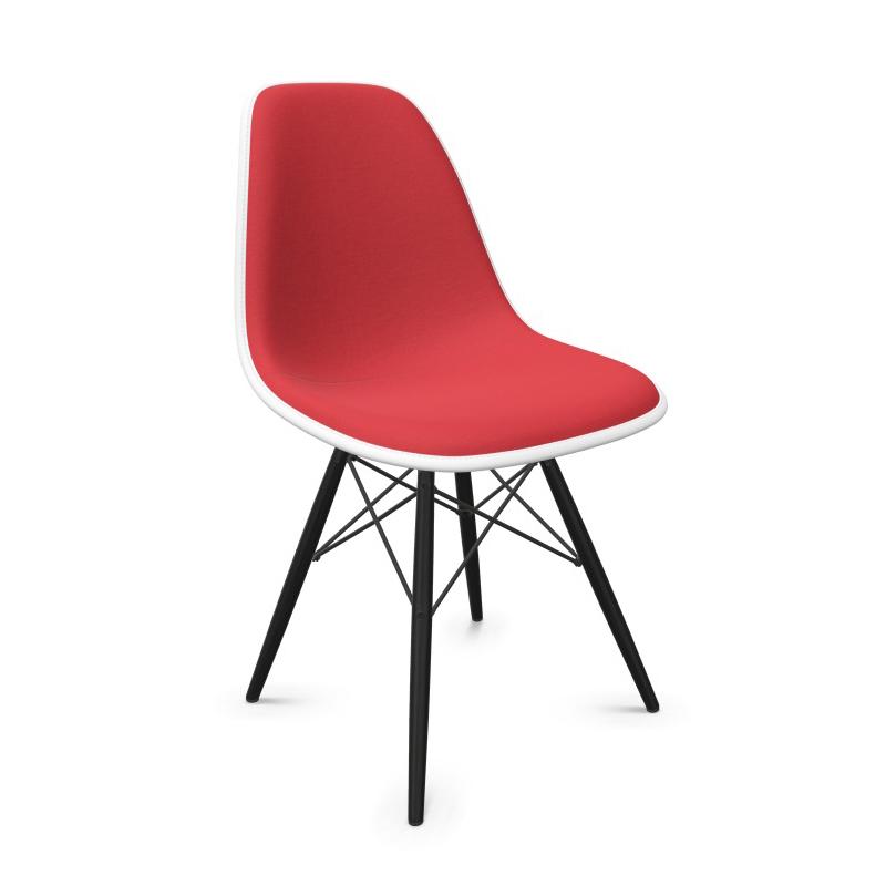 VITRA sedia interamente imbottita e base in acero nero Eames Plastic Side Chair DSW NUOVE DIMENSIONI (Bianco, cuscino rosso/rosso papavero - Polipropilene, legno e tessuto Hopsak)