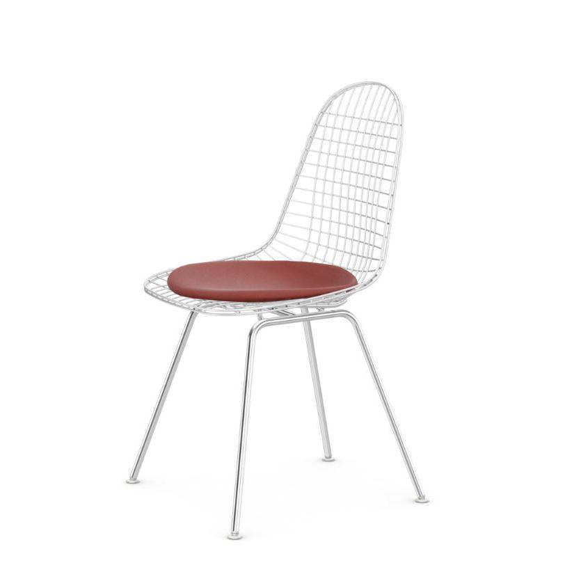 Con la Wire Chair, Charles e Ray Eames effettuano variazioni sul tema della scocca ergonomica monopezzo nella sua forma più trasparente. Le sedie sono disponibili senza imbottitura, con cuscini o con le imbottiture del sedile e dello schienale dette "bikini". DKX = Dining Height K-Wire Shell X-Base