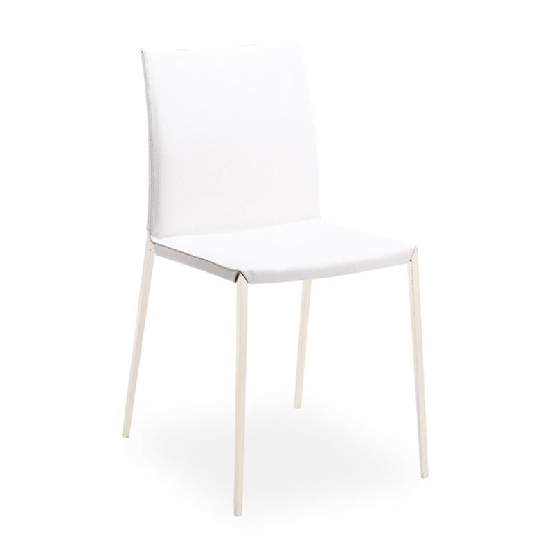 Struttura in lega di alluminio lucidato oppure verniciato. Sedile e schienale imbottiti in poliuretano. Rivestimento sfilabile in stoffa o in pelle oppure non sfilabile in cuoio. A richiesta viene fornita una fodera coprisedia da calzare senza fissare: in tessuto 100% cotone, colore bianco, disponibile sia corta che ricopre sedile e schienale, sia lunga che ricopre anche le gambe.