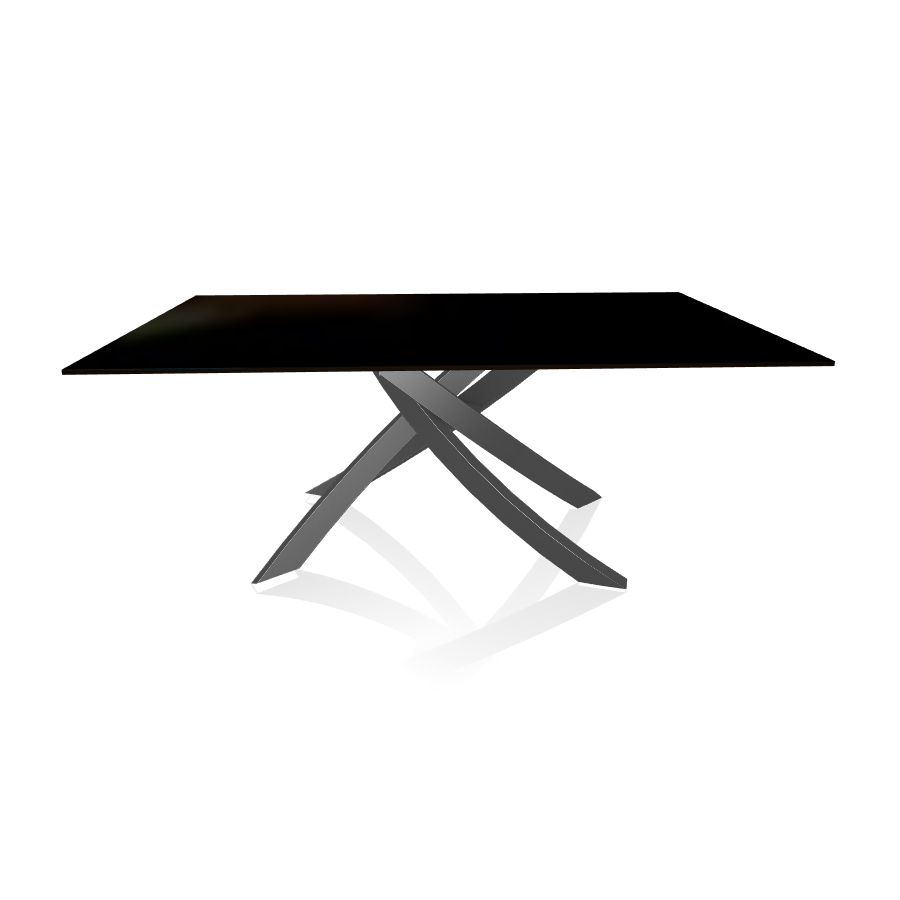 BONTEMPI tavolo con struttura antracite ARTISTICO 20.00 180x106 cm (Laccato nero lucido - Piano in cristallo e struttura in acciaio laccato antracite)