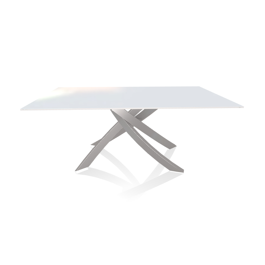 BONTEMPI tavolo con struttura grigio chiaro ARTISTICO 20.00 180x106 cm (Extrawhite lucido - Piano in cristallo e struttura in acciaio laccato grigio chiaro)