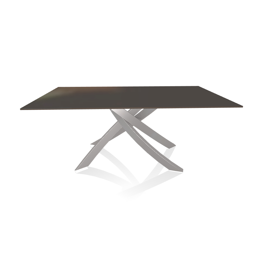 BONTEMPI tavolo con struttura grigio chiaro ARTISTICO 20.00 180x106 cm (Laccato antracite lucido - Piano in cristallo e struttura in acciaio laccato grigio chiaro)