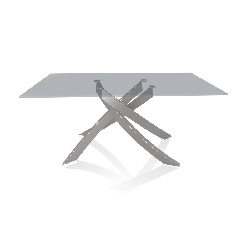 BONTEMPI tavolo con struttura grigio chiaro ARTISTICO 20.13 160x90 cm (Trasparente fumé - Piano in cristallo e struttura in acciaio laccato grigio chiaro)