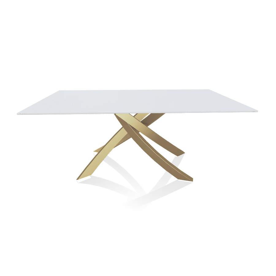 BONTEMPI tavolo con struttura oro ARTISTICO 20.00 180x106 cm (Antigraffio bianco opaco - Piano in cristallo e struttura in acciaio laccato oro)