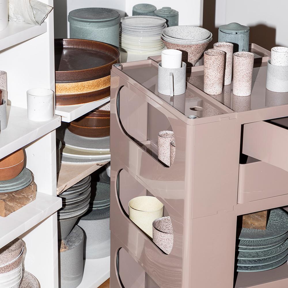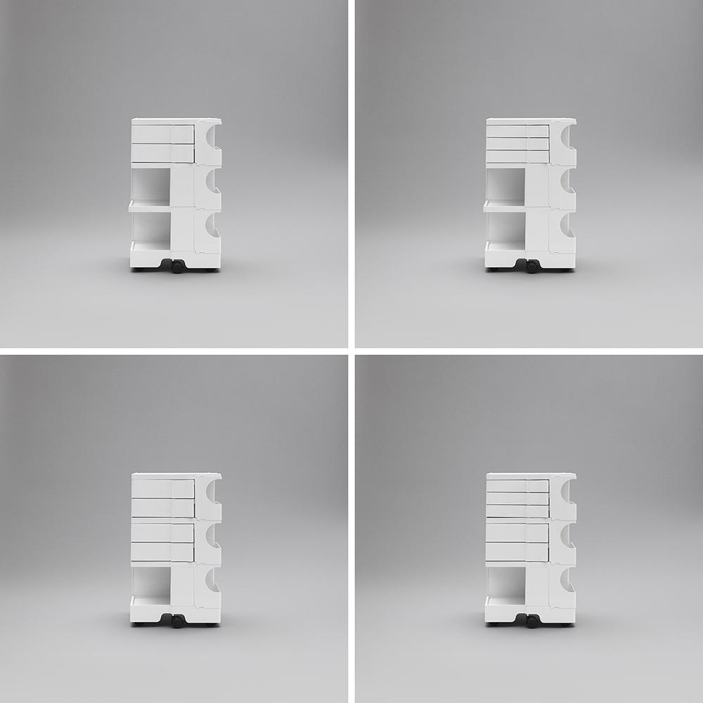 Icona storica del design, il carrello contenitore Boby B-Line si distingue per l’approccio dinamico e l’elevata versatilità. Progettato per garantire una facile componibilità verticale, permette di ottenere configurazioni diverse con capienze personalizzate. La struttura in ABS, composta da moduli con cassetti e ripiani, è montata su 5 ruote piroettanti in polipropilene e offre 4 soluzioni in termini di altezza. Parte della collezione permanente del MoMA di New York e della Triennale di Milano, Premio Smau nel 1971. Su richiesta è possibile acquistare il ripiano in multistrato di legno o sughero.