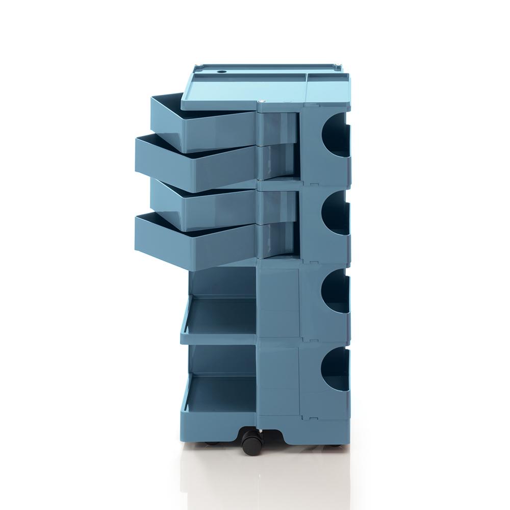 Icona storica del design, il carrello contenitore Boby B-Line si distingue per l’approccio dinamico e l’elevata versatilità. Progettato per garantire una facile componibilità verticale, permette di ottenere configurazioni diverse con capienze personalizzate. La struttura in ABS, composta da moduli con cassetti e ripiani, è montata su 5 ruote piroettanti in polipropilene e offre 4 soluzioni in termini di altezza. Parte della collezione permanente del MoMA di New York e della Triennale di Milano, Premio Smau nel 1971. Su richiesta è possibile acquistare il ripiano in multistrato di legno o sughero.