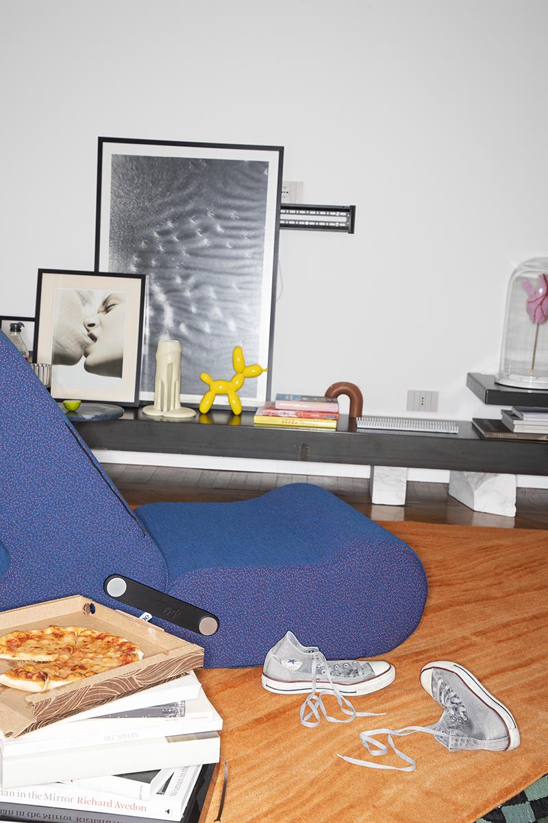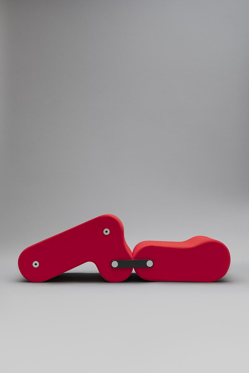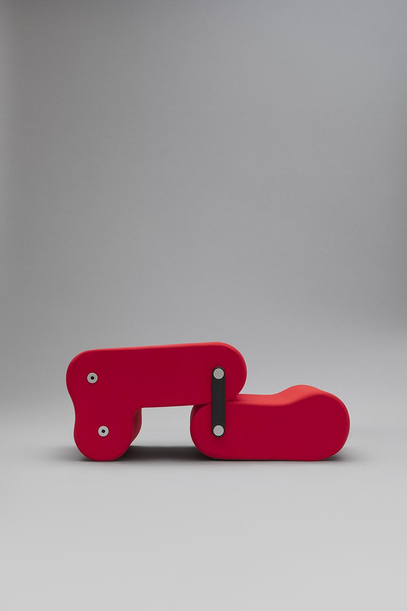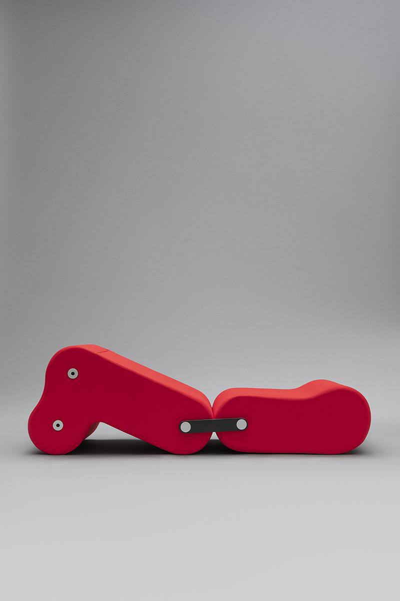 Sedia, poltrona da conversazione o da relax, Multichair B-Line è un sistema trasformabile attraverso la combinazione dei due elementi che la compongono, utilizzabili anche singolarmente. I cuscini hanno la struttura in acciaio imbottita in poliuretano espanso e rivestita in tessuto elasticizzato, mentre il gioco di forme è ottenuto grazie alle cinghie riposizionabili in cuoio e alle boccole in acciaio cromo-satinato. Parte della collezione permanente del MoMA e del Metropolitan Museum of Art di New York.