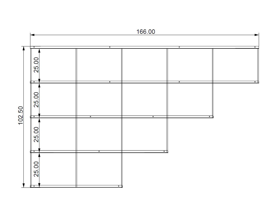 In questa composizione la libreria viene proposta con larghezza 166 cm e altezza 102,50 cm, composta da 4 elementi orizzontali, come evidenziato nell'immagine principale.